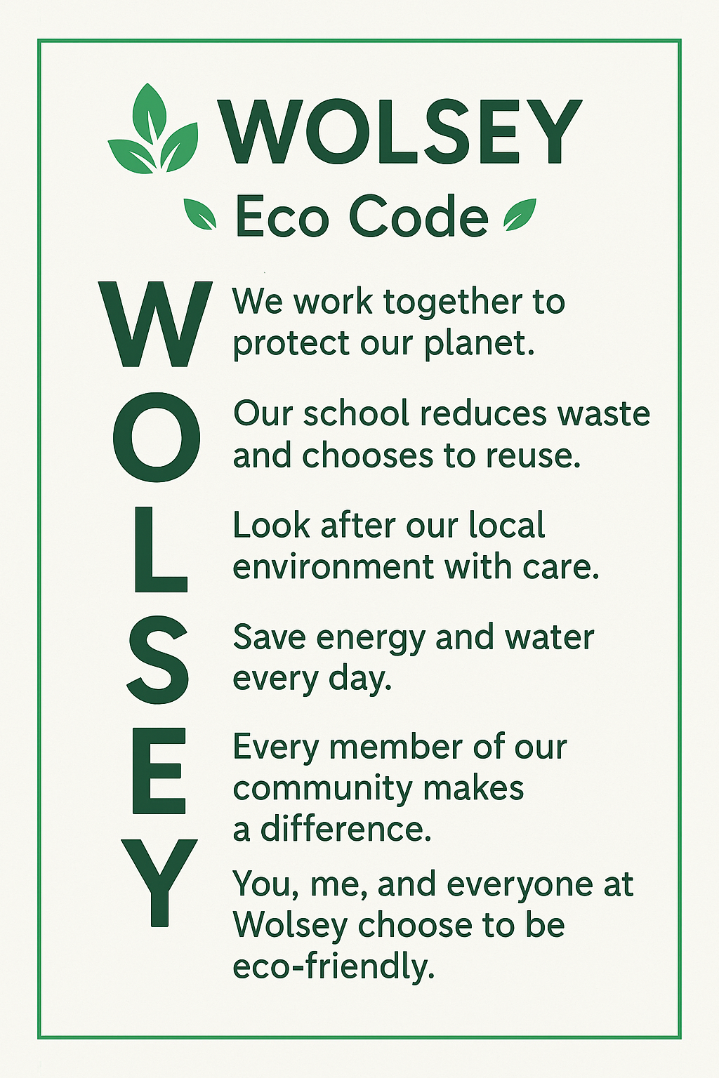 Achieving the Green Flag Award is a celebration of the hard work, passion and teamwork shown throughout Wolsey House. Most importantly, it is a reminder that when children are given the chance to lead, they can make an incredible difference—to their school, their community and the planet.